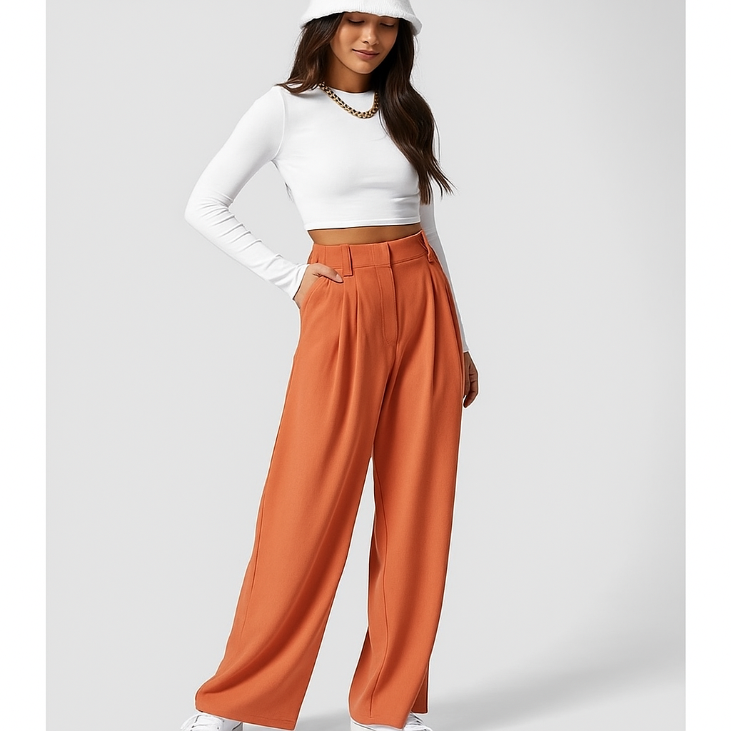 The fabric has a soft, flexible drape—not stretchy like leggings, but they move naturally with your body.